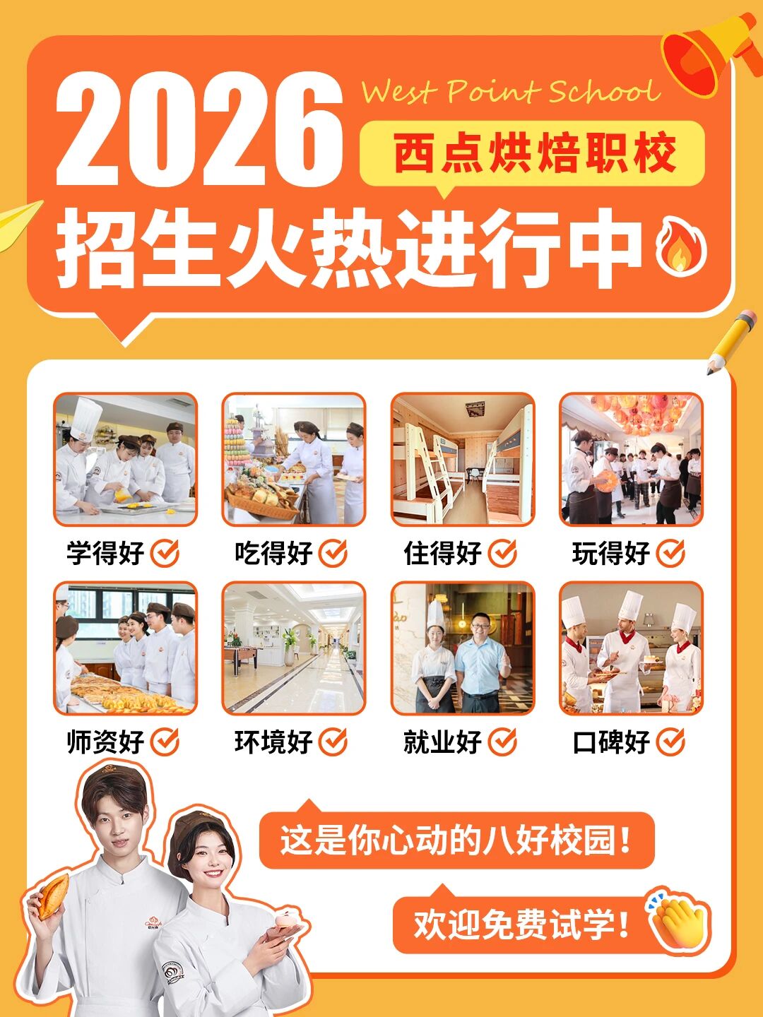 适合人群:初高中生(文化课吃力、想换赛道)、应届初中/高中毕业生、成人创业就业、对西点烘焙西餐咖啡调酒有兴趣、渴望掌握一技之长的人。